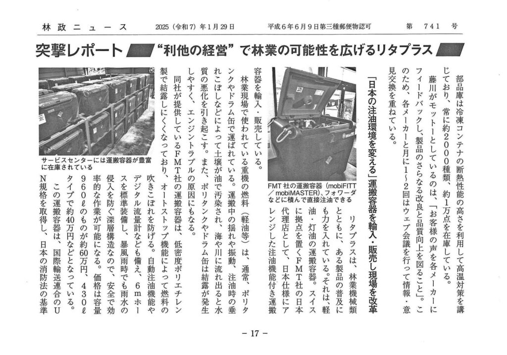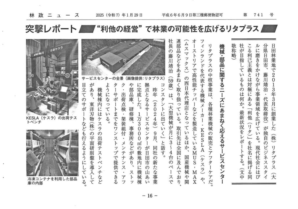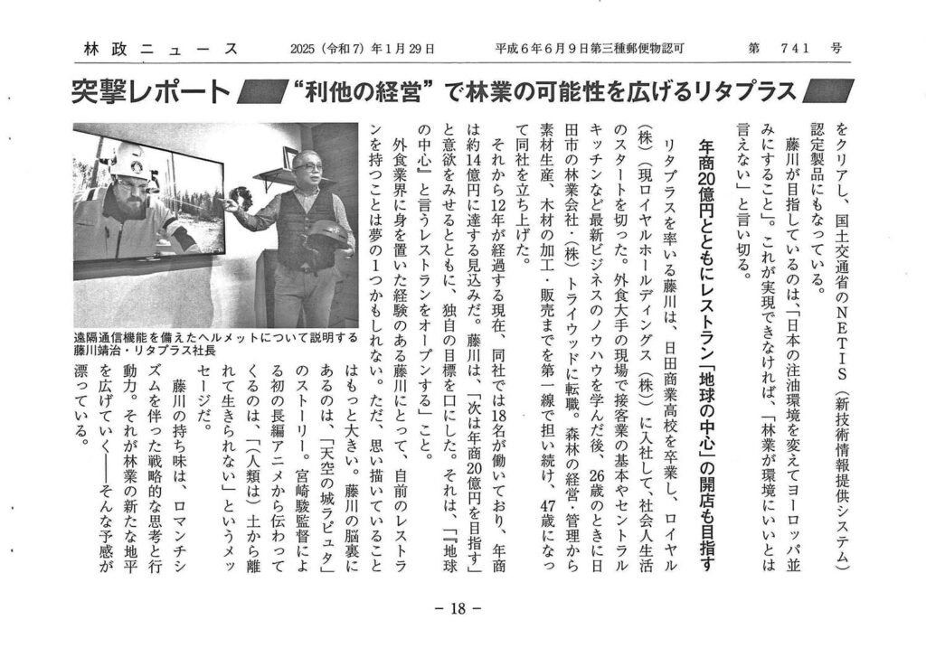隔週刊 林政ニュース(第741号)に 弊社の紹介記事が掲載されました。