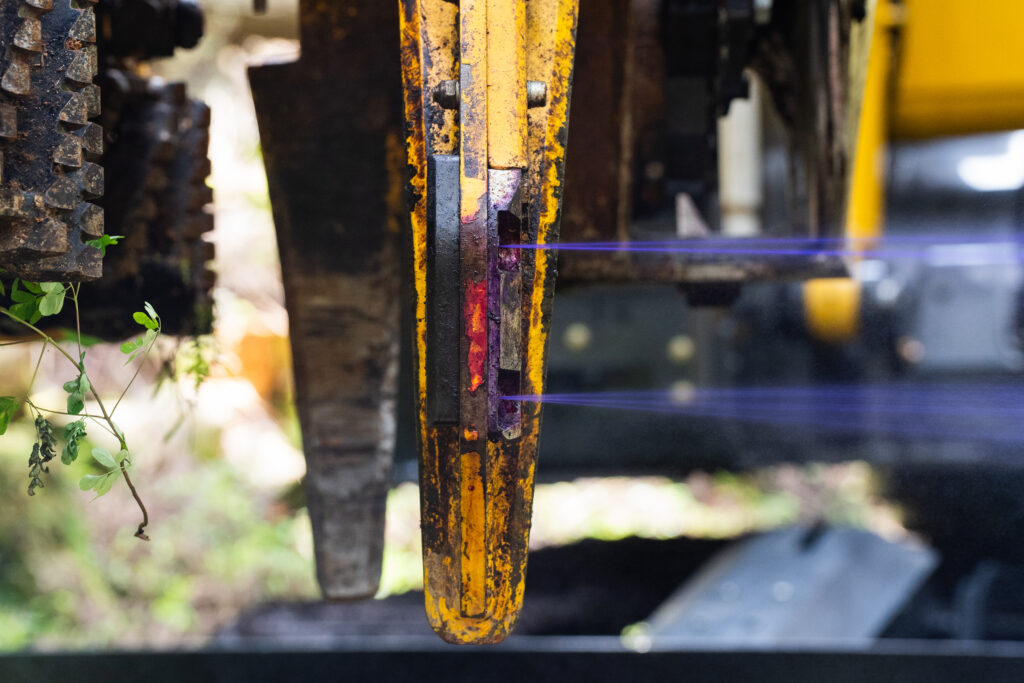 造材時にリアナイフから噴射される2色のスプレーで、①赤②青③赤と青④マーキングなしの4種類に色分けします。 需要者向けに色を設定し仕分けできます。
