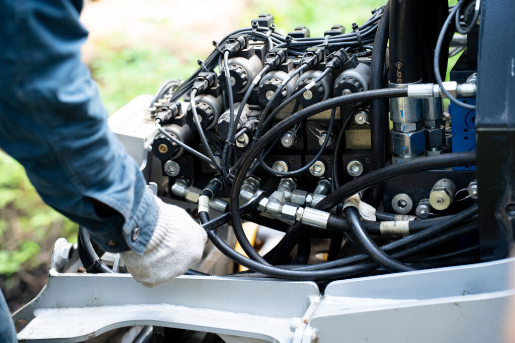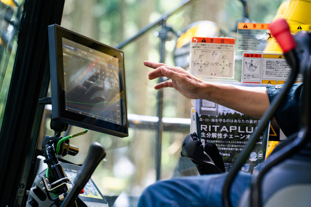 小型エンジン搭載の油圧ショベルでも、従来同様の高い造材パフォーマンスを維持。