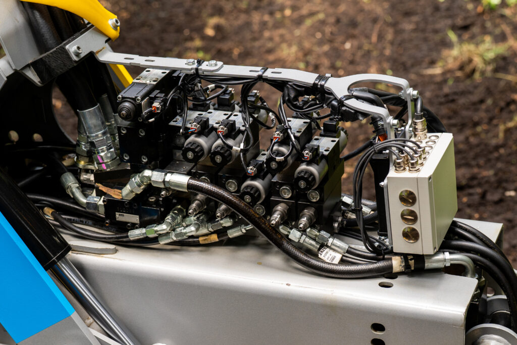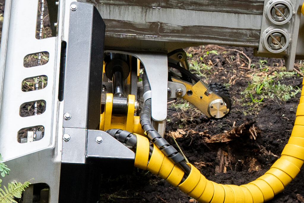 枝払い中の枝の侵入を防ぐためガイドプレートを追加、さらにカバー補強で耐久性を向上しました。
