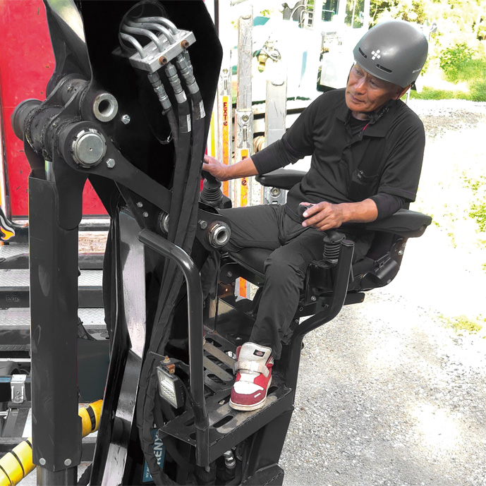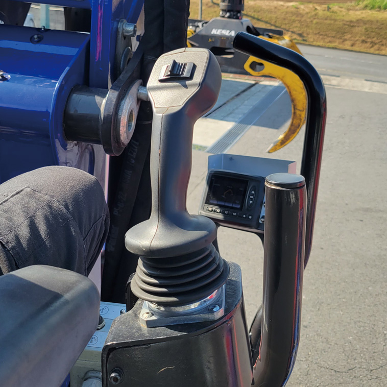 電気式コントローラーは足ペダルがなく、傾斜地でも安全に作業できます
