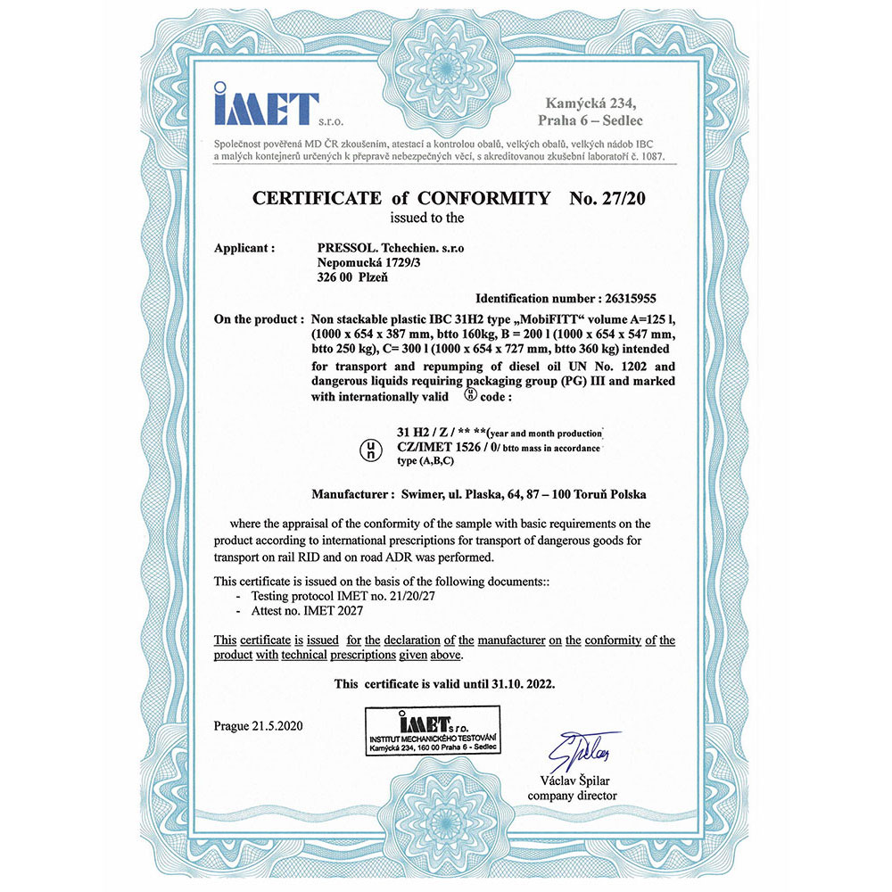 FMT社製運搬容器は国際輸送適合の「UN規格」を取得