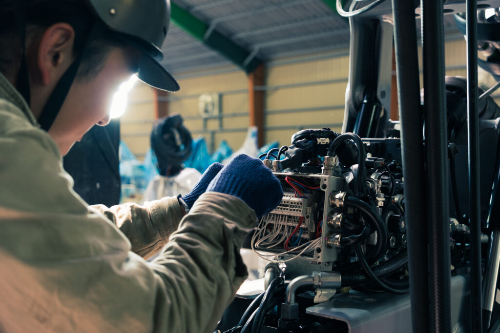 高性能林業機械の修理・メンテナンス、新車の組付・架装、納車整備等を行います。